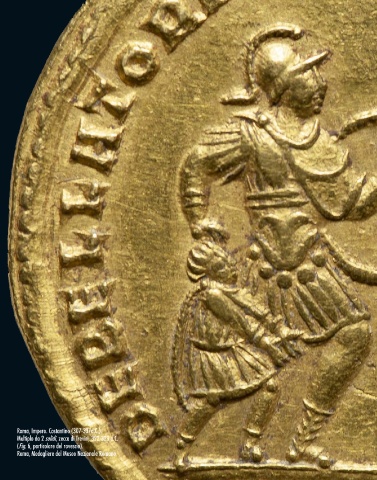 Roma, Impero. Costantino (307-337d.C.). Multiplo da 2 solidi, zecca di Treviri, 322-323 d.C. (Fig. 6, particolare del rovescio). Roma, Medagliere del Museo Nazionale Romano