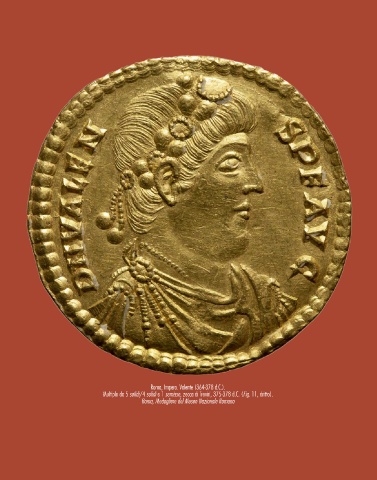Multiplo da 5 solidi/4 solidi e 1 semisse, zecca di Treviri, 375-378 d.C. (Fig. 11, dritto).