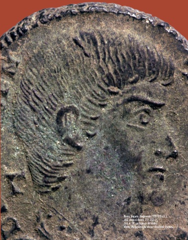 Roma, Impero. Magnenzio (350-353 d.C.). AE2, zecca di Roma, 351-352 d.C. (cat. n. 50, particolare del dritto). 340 341 Roma, Medagliere del Museo Nazionale Romano