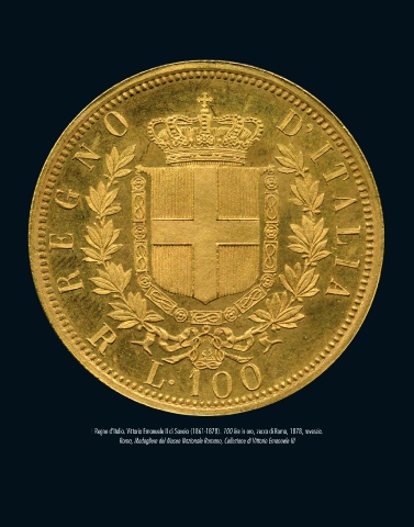 F Regno d’Italia. Vittorio Emanuele II di Savoia (1861-1878). 100 lire in oro, zecca di Roma, 1878, rovescio.
