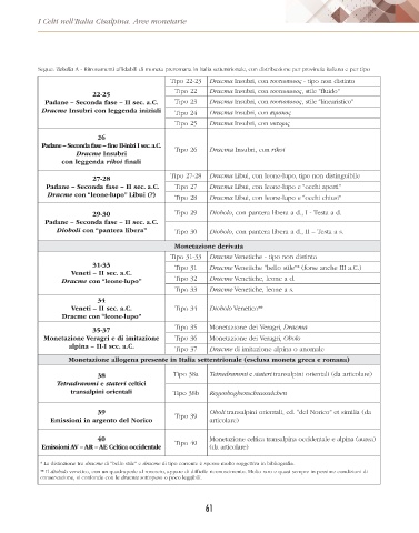 Segue: Tabella A - Ritrovamenti affidabili di moneta preromana in Italia settentrionale, con distribuzione per provincia italiana e per tipo