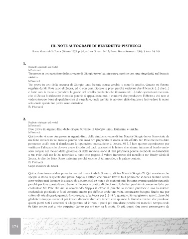 III. NOTE AUTOGRAFE DI BENEDETTO PISTRUCCI
