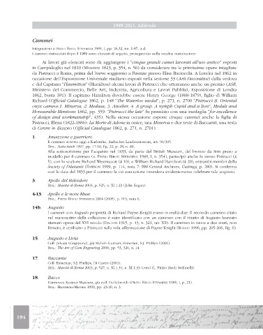 Ai lavori già elencati sono da aggiungere i “cinque grandi camei lavorati all’uso antico” esposti