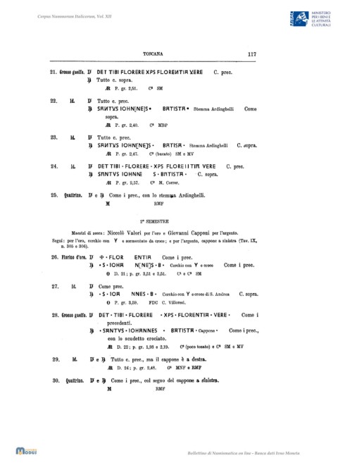 Maestri di zecca: Niccolò Valori per l'oro e Giovanni Capponi per l'argento.