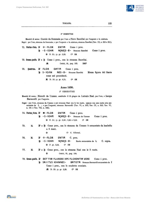 Maestri di zecca: Niccolò da Uzzano, sostituito il 15 giugno da Lutozio Nasi, per l'oro, e Iacopo