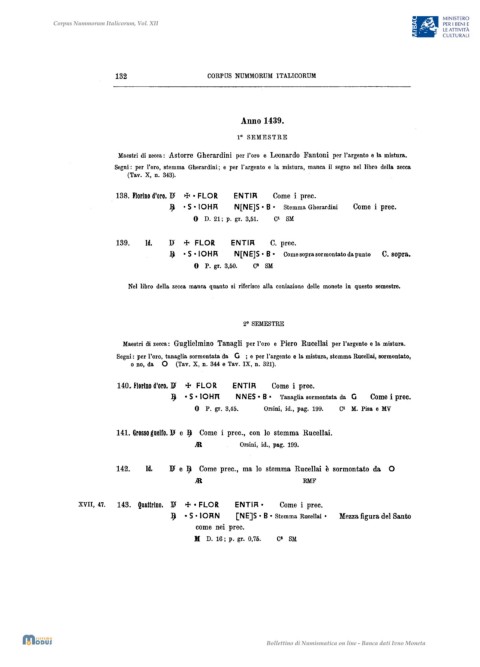 Maestri di zecca: Guglielmino Tanagli per l'oro e Piero Rucellai per l'argento e la mistura.