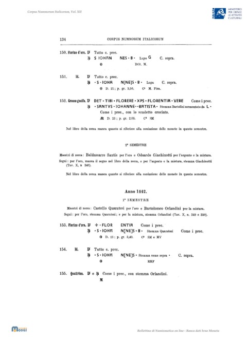 Maestri di zecca: Castello Quaratesi per l'oro e Bartolomeo Orlandini per la mistura.