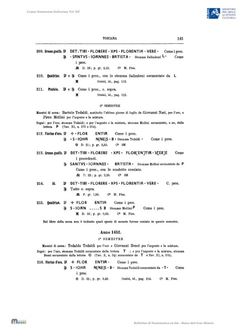 Maestri di zecca: Tedaldo Tedaldi per l'orò e Giovanni Benci per l'argento e la mistura.