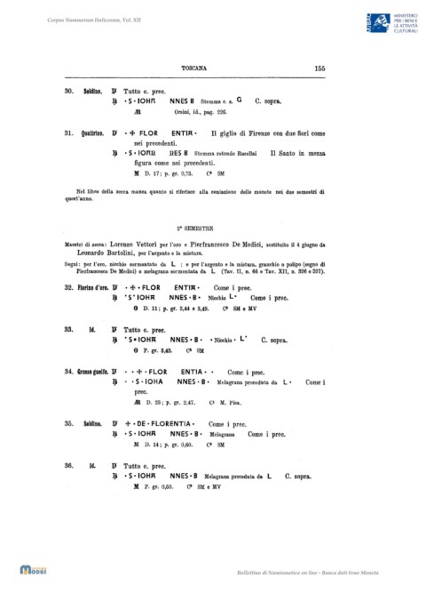 Maestri di zecca: Lorenzo Vettori per 1'oro e Pierfrancesco De Medici, sostituito il 4 giugno da