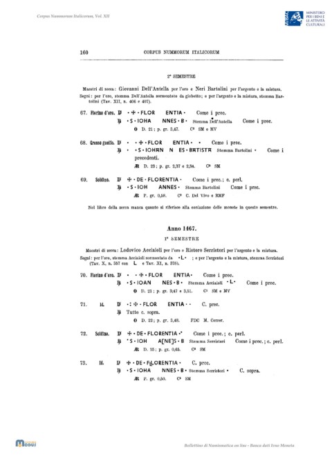 Maestri di zecca: Giovanni Dell'Antella per l'oro e Neri Bartolini per l'argento e la mistura.