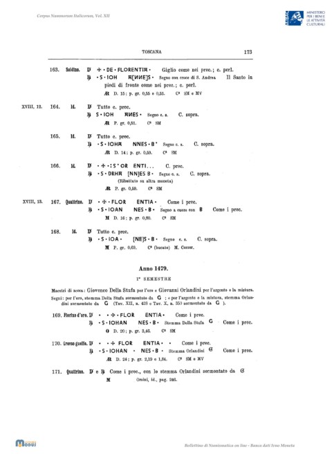 XVIII, 13. 167. Quattrino. ]p • ~ • FLOR ENTIA· Come i prec .