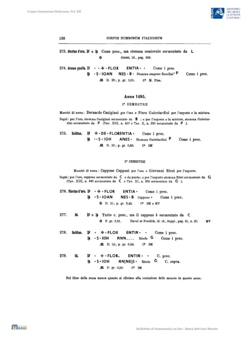 Maestri di zecca: Cappone Capponi per l'oro e Giovanni Ricci per l'argento.