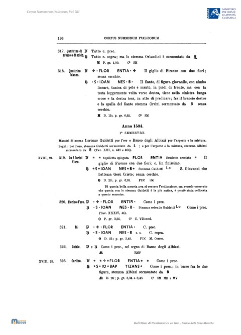 XVIII, 24. 319. Da 21lorlnl 11 'il 'il Aquiletta spiegata FLOR ENTIA Scudetto crociato 'il Il