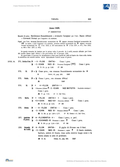 Maestri di zecca: Bartolomeo Buondelmonte e Averardo Canigiani per l'oro; Banco Albizzi