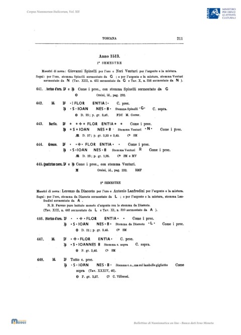 Maestri di zecca: Lorenzo da Diacceto per l'oro e. Antonio Lanfredini per l'argento e la mistura.
