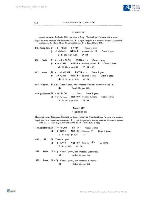 216 CORPUS NUMMORUM ITALICORUM