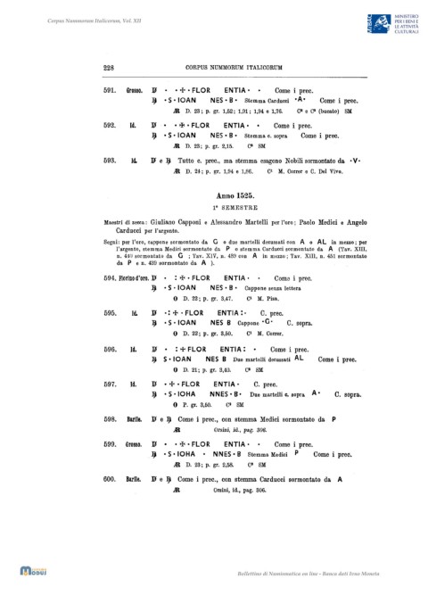 Maestri di zecca: Giuliano Capponi e Alessandro Martelli per l'oro; Paolo Medici e Angelo