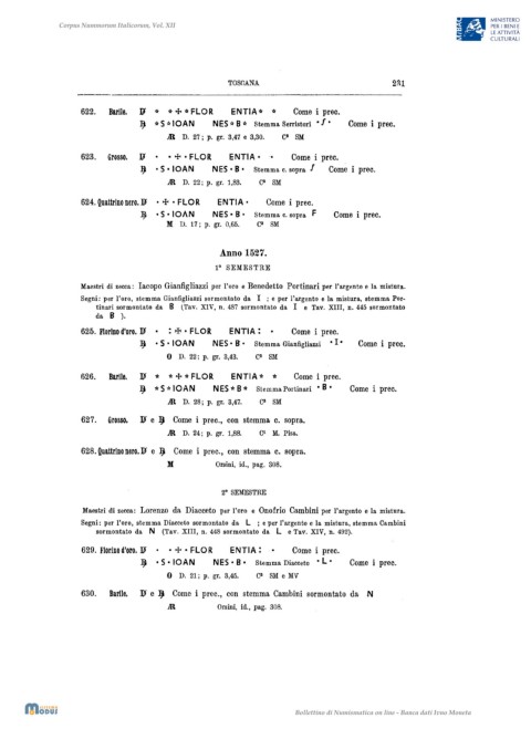 1) *S*IOAN NES * B* Stemma Portinari • B • Come i prec.