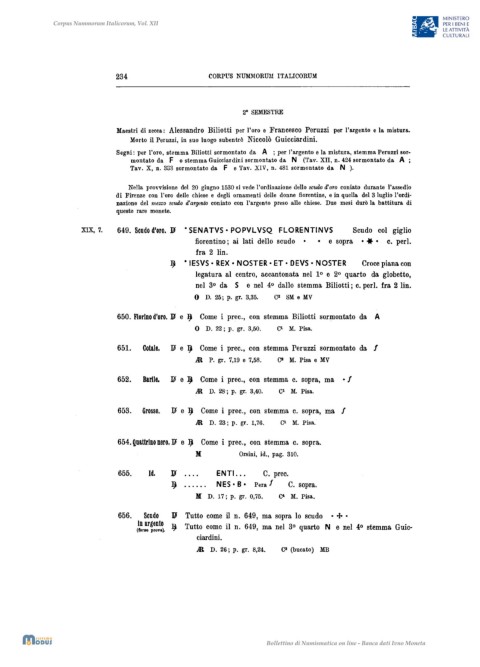 Maestri di zecca: Alessandro Biliotti per l'oro e Francesco Peruzzi per l'a.rgento e la mistura.