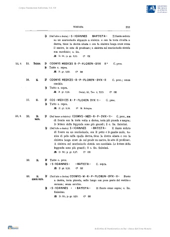 XX, 9. 58. Id. ]p (Dal basso a sinistra) COSMVS· MED • R· P • DVX • \I • C. prec., ma