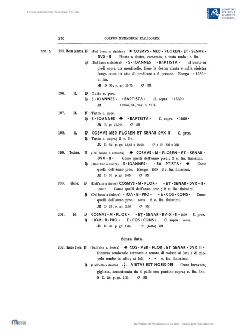200. Giulio. D (Dall'alto a destra) COSMVS • M· FLOR· • ET· SENAR • DVX • II·