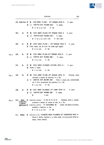 XXI, 7. 208. Id. ]p ... (OS· MED • FLOR • ET SENAR· DVX • II· Stemma ovale