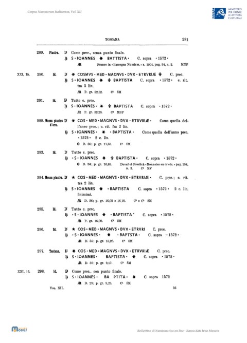 XXI, 15. 290. Id. D' .. COSMVS· MED· MAGNVS • DVX • ETRVRIA:" C. prec.