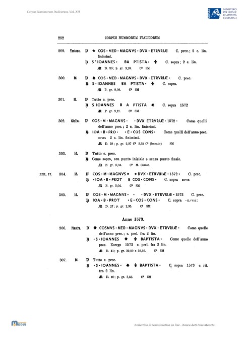 XXI, 17. 304. Id. ]p COS· M • MAGNVS ~ ~ DVX • ETRVRIA: ·1572. C. prec.