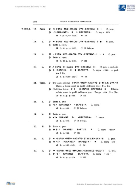 T. XXII, 1. 18. Piastra. 11 * FRAN' MED • MAGN • DVX • ETRVRIA: • II· C. prec.