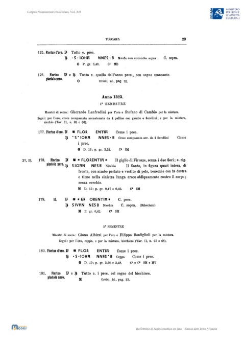 Maestri di zecca: Gherardo Lanfredini per l'oro e Stefano di Cambio per la mistura.