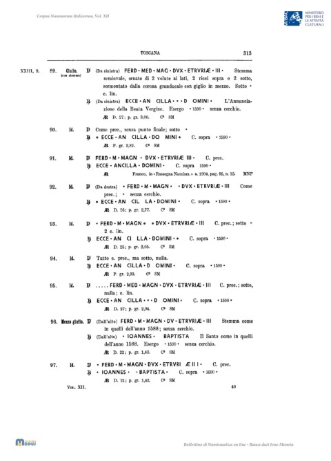:XXIII, 9. 89. Giulio. ]p (Da sinistra) FERD· MED • MAG • DVX· ETRVRIA: -III· Stemma