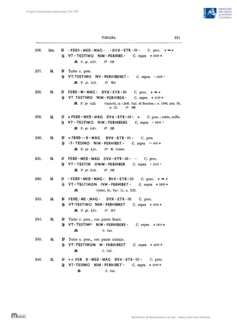 239. Id. ]j)' ~ FERD • MEO· MAG DVX' ETR· III· ~ C. prec.; sotto, nulla.