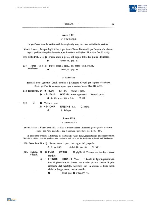 Maestri di zecca: Iacopo degli Alberti per l'oro eTano Baroncelli per l'argento e la mistura.