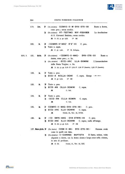 127. Mezzo glullo. 11 (Da destra) COSM -II· MA - DVX· ETR -1111- Stemma ovale
