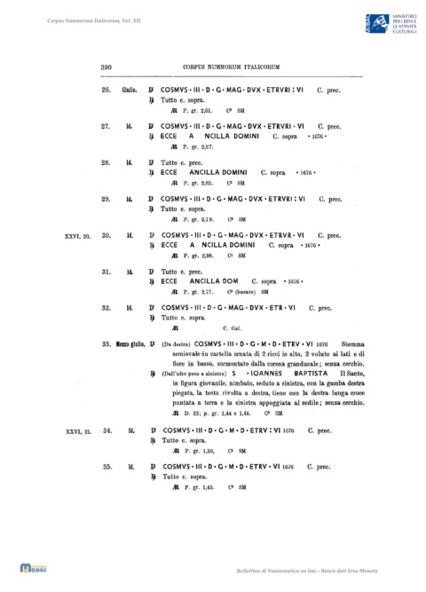 26. Giulio. ]p COSMVS' III • D • G· MAG· DVX • ETRVRI : VI C. prec.
