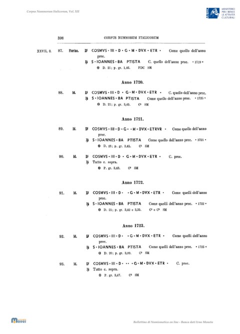 88. Id. 11 COSMVS· III • D • G· M • DVX • ETR. C. quello dell'anno prec.