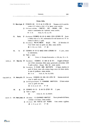 96. Id. D' COSMVS' III • D • G • MAG • DVX • ETRVRI : VI C. prcc., senza