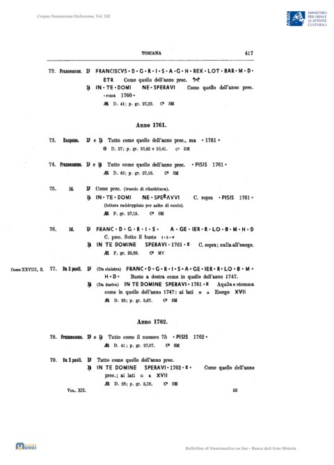 78. Francescone. 11 e l} Tutto come il numero 75 • PISIS 1762·