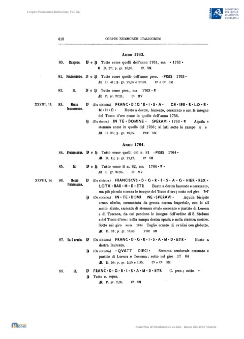 84. Francesoone. ]i)' e l} Tutto come quelli del n. 81 . PISIS 1764·