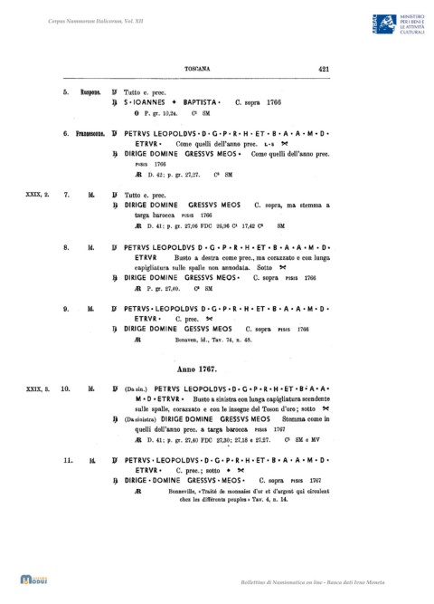 XXIX, 3. lO. Id. 11 (Da sin.) PETRVS LEOPOLDVS * D. G * P * R * H * ET * B" A· A·