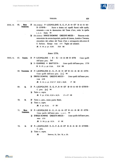 XXIX, 11. 67. Ruspone, Jì)' p. LEOPOLDVS • D· G • A· A· M • D • ETR Come quelli