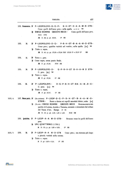 XXX, 7. 139. Id. 11 p. LEOP • A • A M· D· ETR Come prcc.; ma stemma più largo