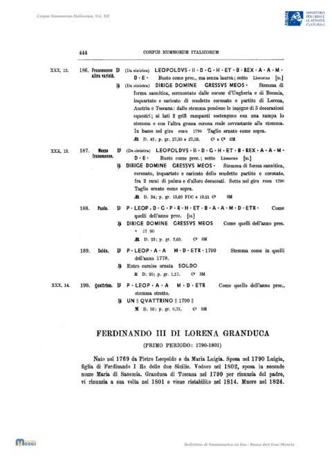 XXX, H. 190. Quattrino. ]p p • LEOP • A • A M • D • ETR Come quello dell'anno prec.,