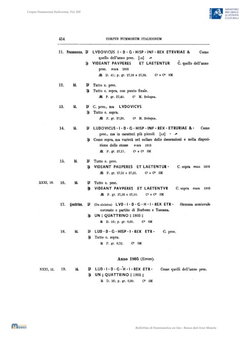 XXXI, 11. 19. Id. ]p LUD· I • D • G • OH • I o REX ETR· Come quelli dell'anno prec.