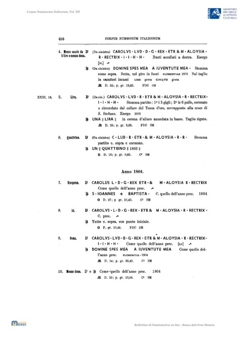 XXXI, 14. 5. Lira. 11 (Da sin.) CAROLVS· LVD • R· ETR & M· ALOYSIA • R· RECTRIX·