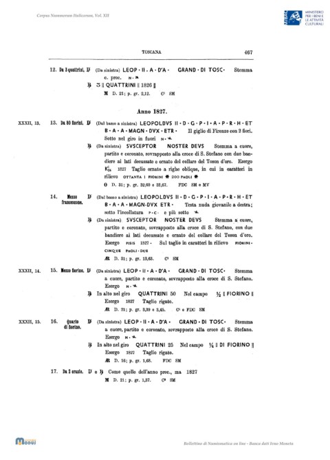 12. Da 3quattrini. ]j)' (Da sinistra) LEOp· Il • A· OJA • GRAND· DI TOSe· Stemma