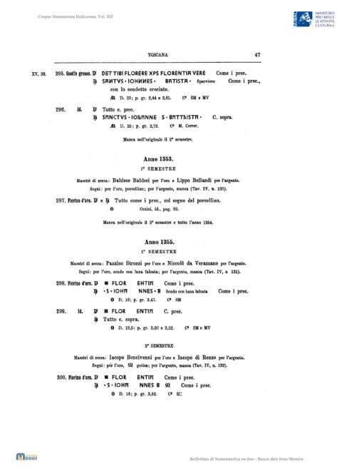Maestri di zecca: Baldese Baldesi per l'oro e Lippo Bellsndi per l'àrgento.