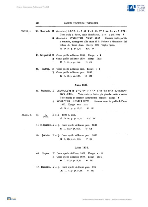 45. Quattrino. ]j)' e.IJ Come quello dell'anno prec. 1833