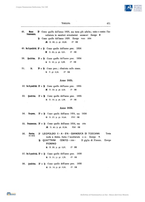 49. Da 3quattrini. ]J c 1) Come quello dell'anno prec. 1834