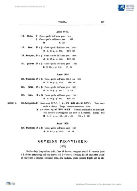 e il fiorino (argerrto); poi con decreto del Governo di Toscana del 28 settembre 1859